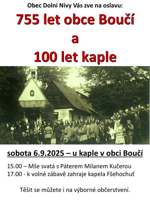 Úvod > Novinky v obci > Pozvánka na 755 let obce Boučí a 100 let kaple